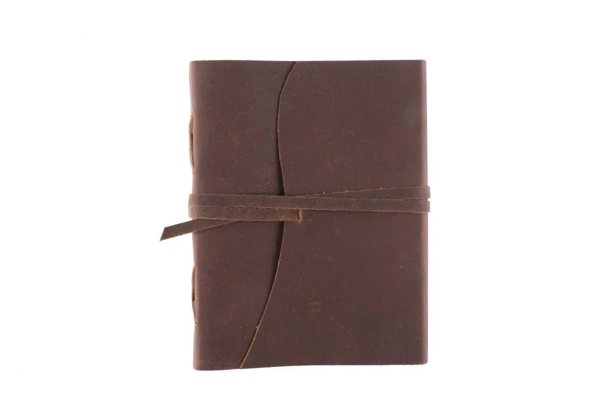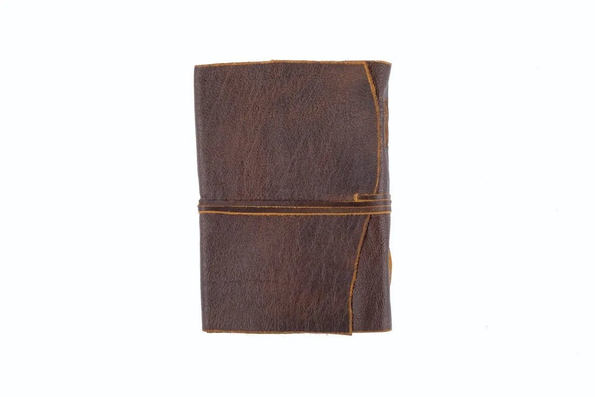 It's no surprise that our Manaf Leather Journals are one of our best sellers. Character laden, earthy leather on the outside, and bound with wrap around leather binding, these large handmade rustic leather journals look like they are from a time long gone. Open your journal to find beautiful soft cotton paper to collect your thoughts or pictures. If you are the organiser, then make this your personalised leather notebook. Got lists and plans on papers and in notepads all over the office or house? Get organised by securing them all in one place. Whether aha moments, revelations, innovation or stimulation, your leather journal is the perfect way to keep them together. Characteristics The Manaf Journal has an extended wrap around leather binding and beautifully textured high quality cotton paper. It is the perfect keepsake for your musings. Handmade by leather artisans, this refillable journal is hand stitched with leather binding. This 100% genuine leather notebook is rustic in design for enhanced creativity and longevity. Purpose of purchase Like you, our customers are extraordinary distinctive people with purpose. They use our gorgeous products for many different reasons.
