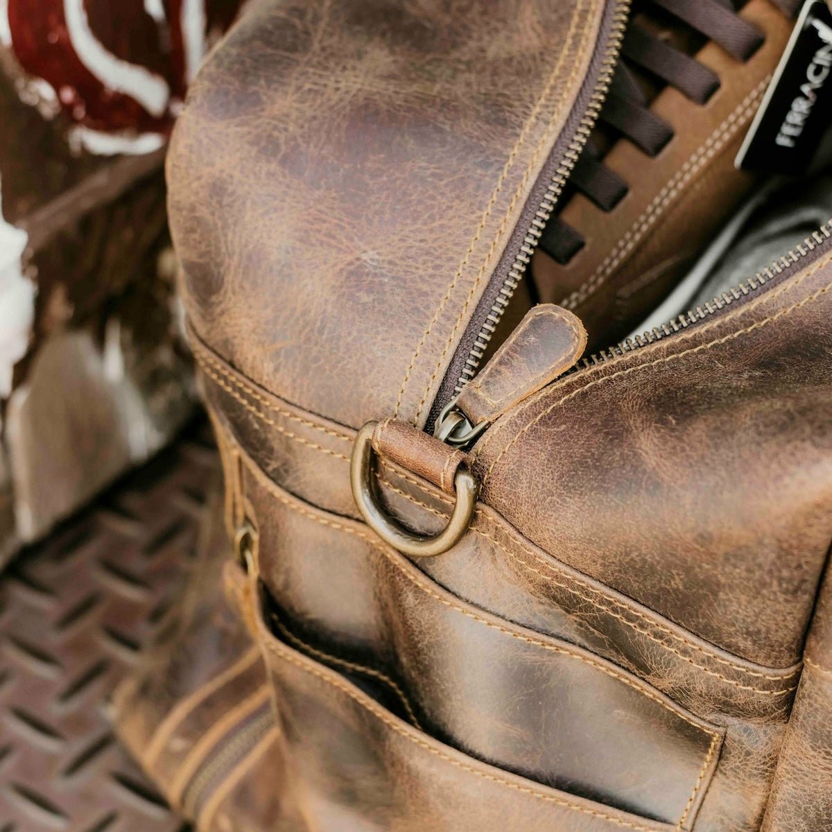 Built for those who travel with purpose, the Bastion Duffle is more than a bag—it’s a reliable companion made from top-grain distressed leather that tells its own story. Spacious, rugged, and refined, it’s designed to carry what you need without compromising your style.