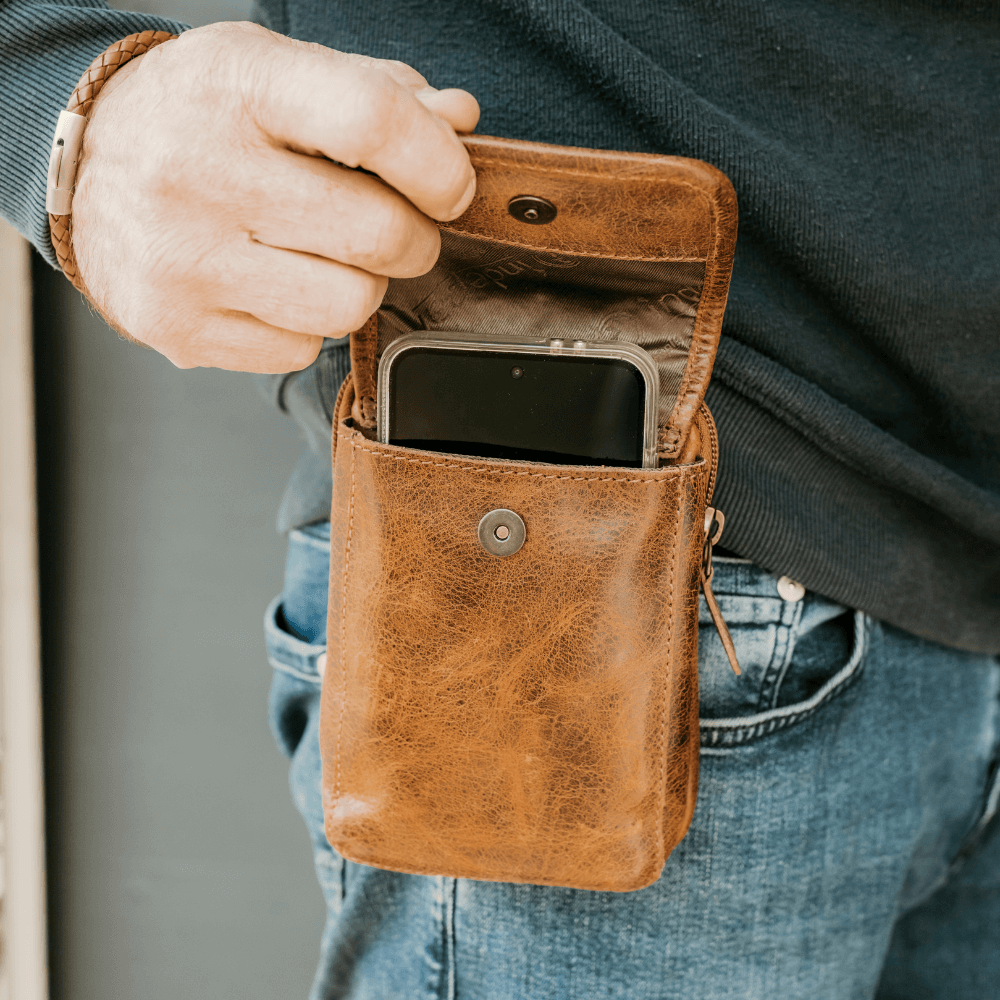 The Leather Belt Pouch comes in our signature leathers - Crazy Horse Tan, Dusty Antique and a Harness brown.